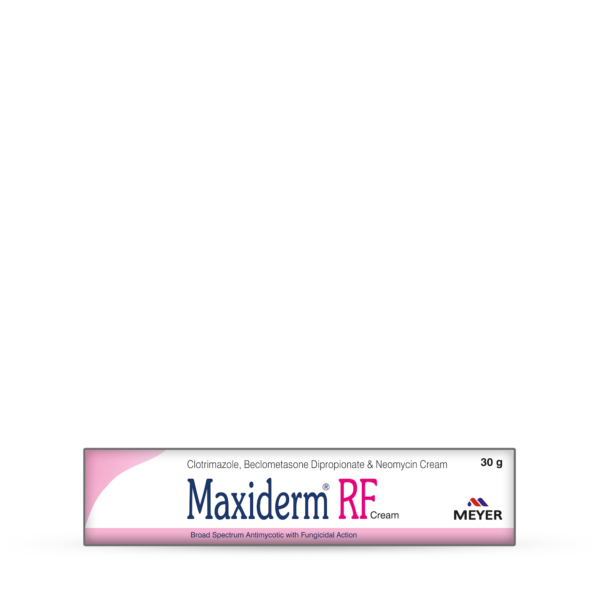 • Maxiderm RF Cream is used to treat fungal infections like ringworm and rash in folds of skin (areas like armpit or beneath the breast).